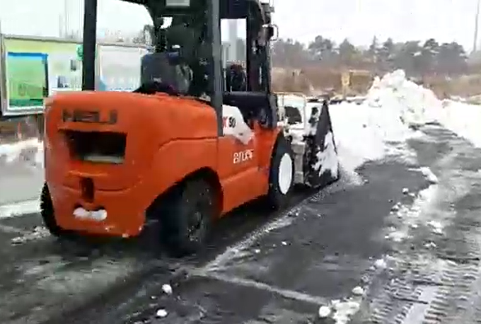 小5T選配傾翻斗+傾翻叉整車應用于除雪現(xiàn)場
