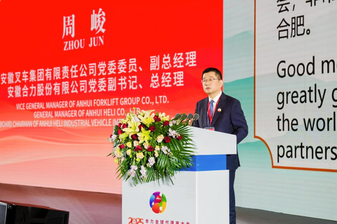 “今天的高光靠的是昨天的眼光,而未來的榮光取決于現在的追光?!卑不詹孳嚰瘓F黨委委員、副總經理,安徽合力股份有限公司黨委副書記、總經理周峻向與會嘉賓作題為《山海同行 共植長青》合力國際化戰略主題報告,詳細闡述合力最新發展動態、國際化實踐探索及市場的挑戰和機遇,全面展示了從“中國合力”到“世界合力”的發展之路,并分享了合力2030國際化發展戰略。
