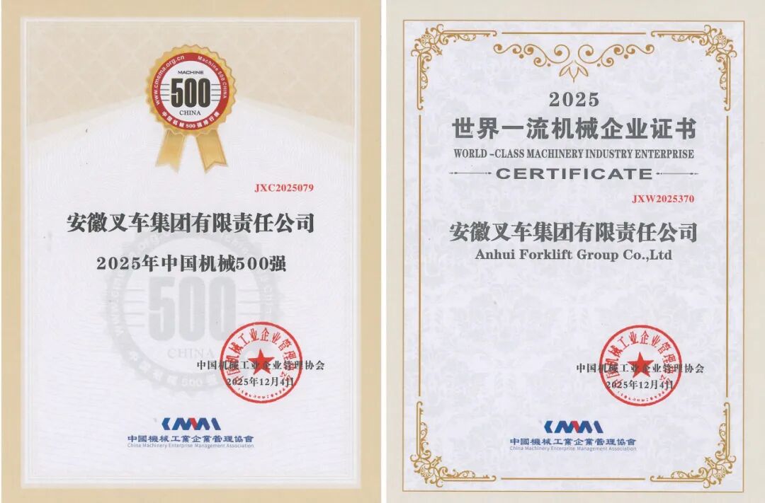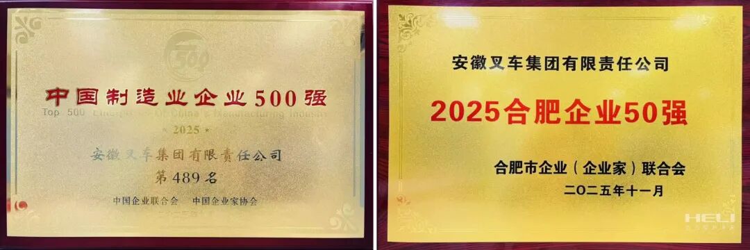 近期,國家及省市各級企業聯合會、企業家協會陸續發布年度企業榜單。憑借穩健的經營業績與卓越的實踐表現,安徽叉車集團成功入選“2025中國制造業企業500強”、“2025安徽企業100強”、“2025安徽制造業100強”、“2025安徽百強企業戰略新興業務營收30強”及“合肥市50強”等多項權威榜單。尤為值得一提的是,公司今年首次躋身“中國制造業企業500強”,排名第489位;同時,在“安徽企業100強”和“合肥市50強”中的排名也實現穩步提升,分別較“十三五”末提升7位和5位。多項榮譽的取得,是公司高質量發展的生動體現。