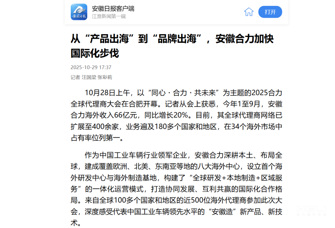 安徽日報客戶端丨從“產(chǎn)品出海”到“品牌出海”,安徽合力加快國際化步伐